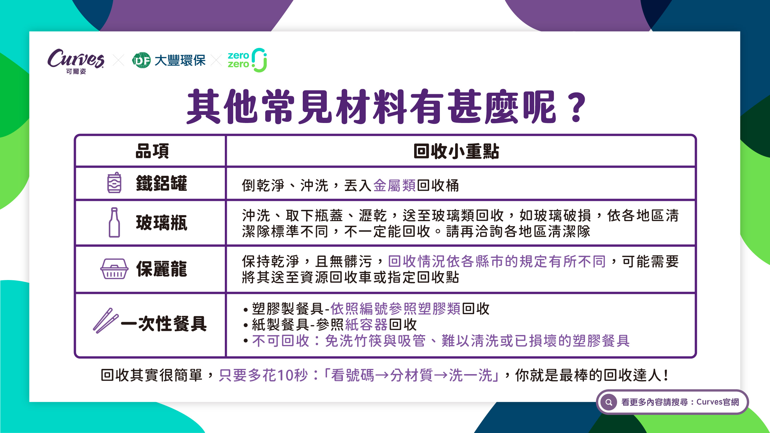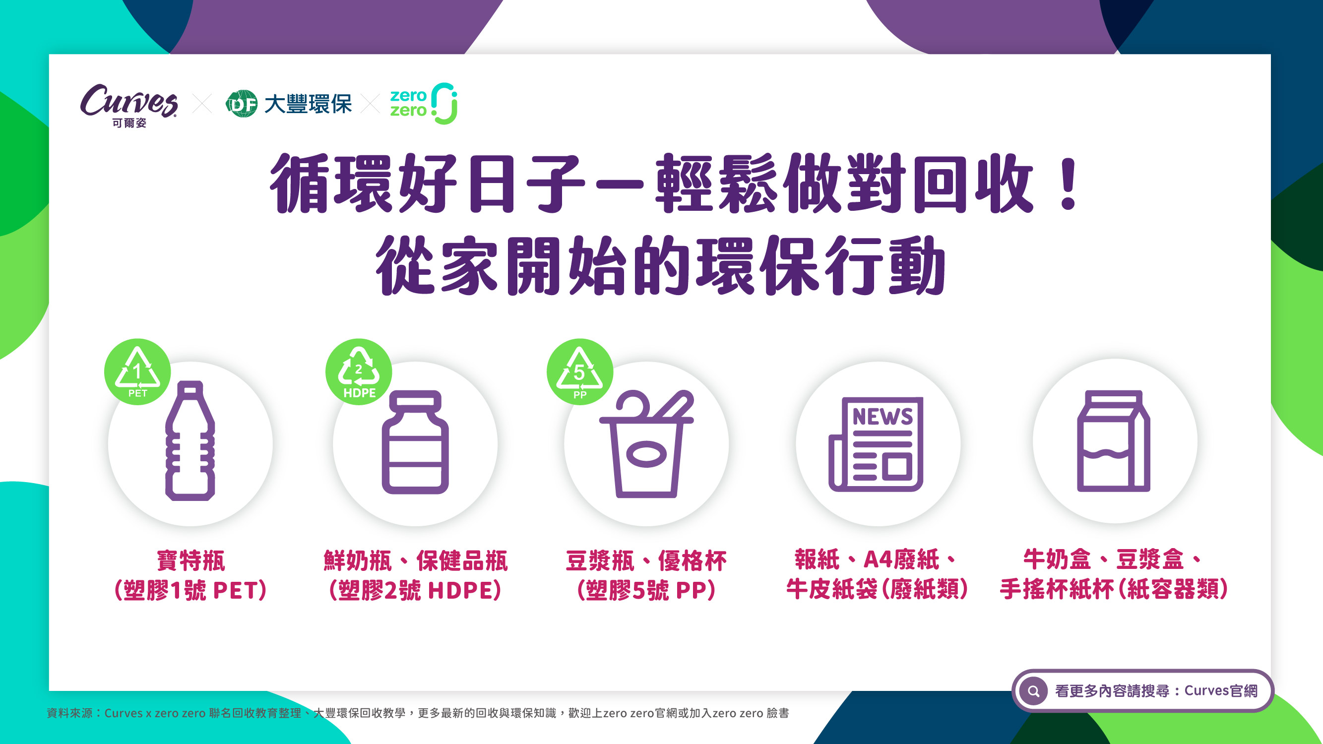 Curves可爾姿 x zero zero聯名回收教育整理、大豐環保回收教學