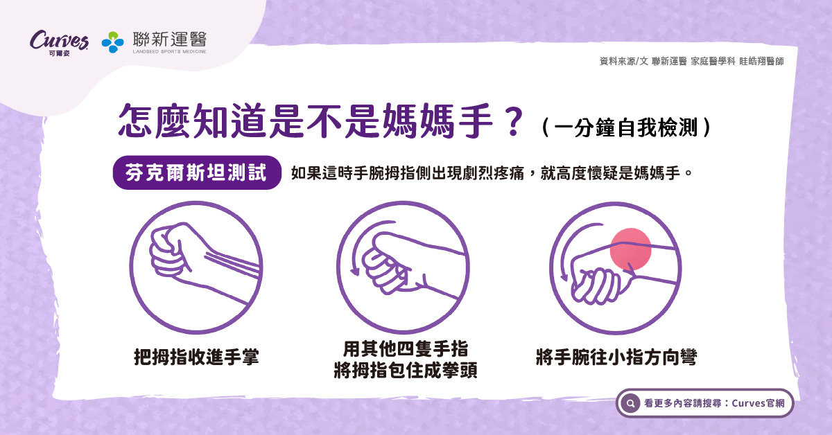 如果這時手腕拇指側出現劇烈疼痛,就高度懷疑是媽媽手。