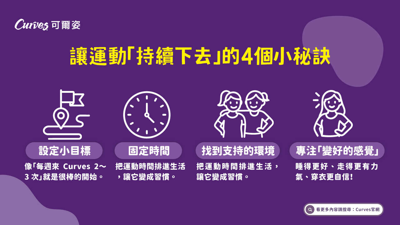 1.設定小目標:像「每週來 Curves 2~3 次」就是很棒的開始。