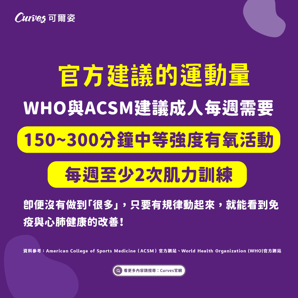 資料參考:American College of Sports Medicine(ACSM)官方網站、World Health Organization (WHO)官方網站